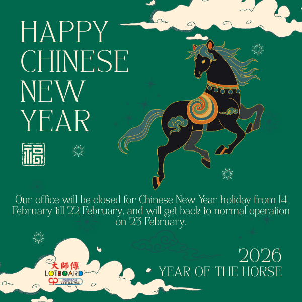 Our office will be closed for Chinese New Year holiday from 14 February till 22 February, and will get back to normal operation on 23 February.